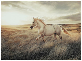 This wall art brings serene beauty to your home. This captivating print on glass captures the grace and majesty of a wild horse galloping through a...