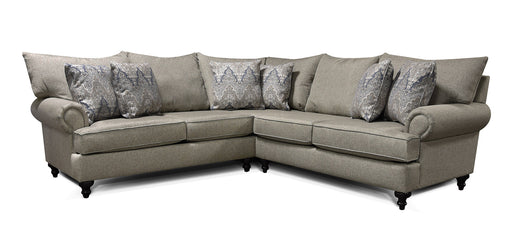 Create a welcoming atmosphere in your home with England's Rosalie collection. With its generous proportions, casual rolled arm, beautiful turned leg, optional antique brass nailhead trim, and loose pillow back, you'll probably want to sit and relax for a bit! Our Rosalie series features a sofa, loveseat, chair, ottoman, and sectional. Make this style go cottage or family room with your choice of over 400 fabrics!